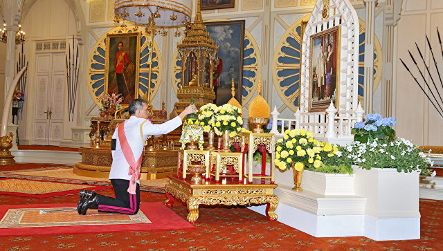 © REUTERS/ Sukree SukplangНаследник престола, 64-летний сын короля Пхумипхона, сразу после кончины отца попросил отсрочить церемонию своего восшествия на престол в связи с глубоким трауром по усопшему монарху, который длился с вечера 13 октября до 14 ноября. /